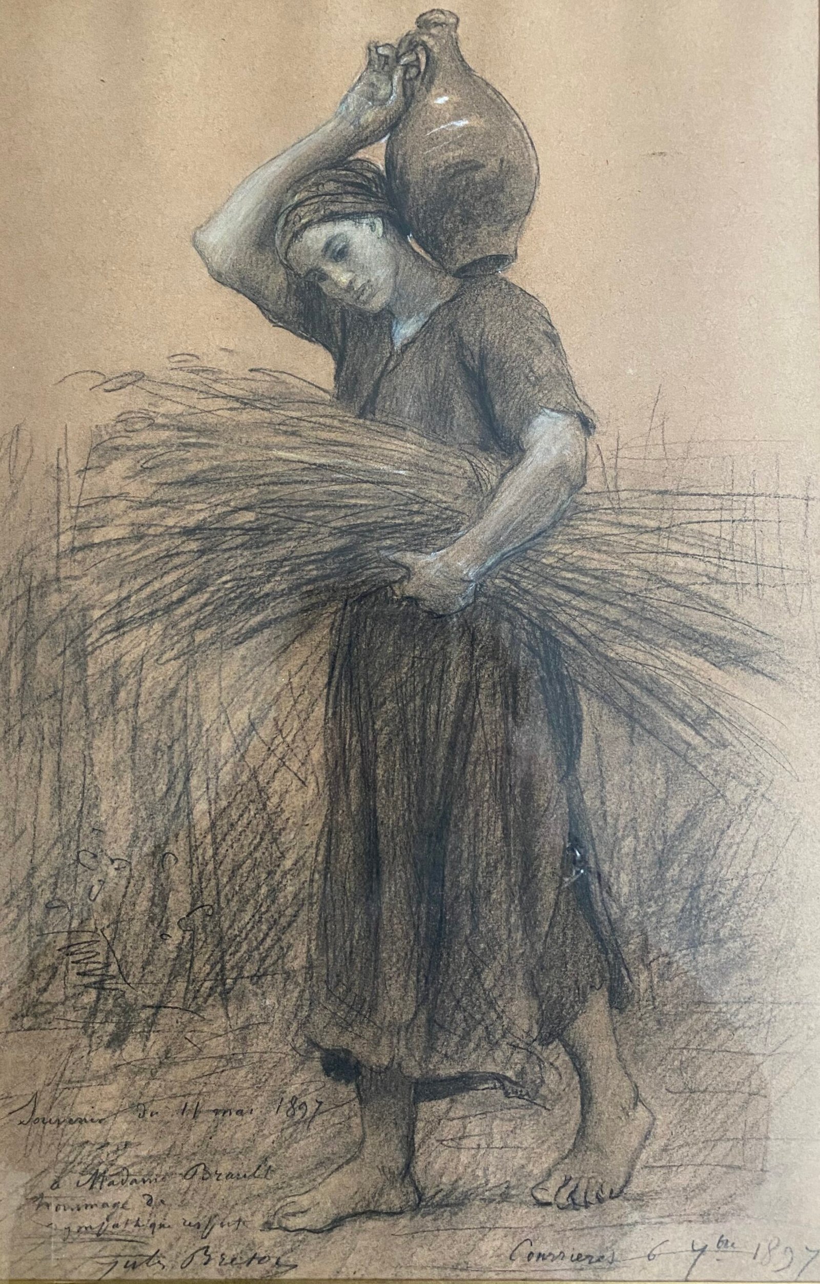 [Signé et annoté en bas à gauche: Souvenir du 11 mai 1897, à Madame Brault, hommage de sympathique respect, Jules Breton ; daté et situé en bas à droite : Courrières, 6 septembre 1897] Crayon, fusain et rehaut de craie blanche sur papier 45,2 x 29,3 cm (17 3/4 x 11 1/2 in.) France, collection particulière Provenance Paris, Monsieur et Madame […]