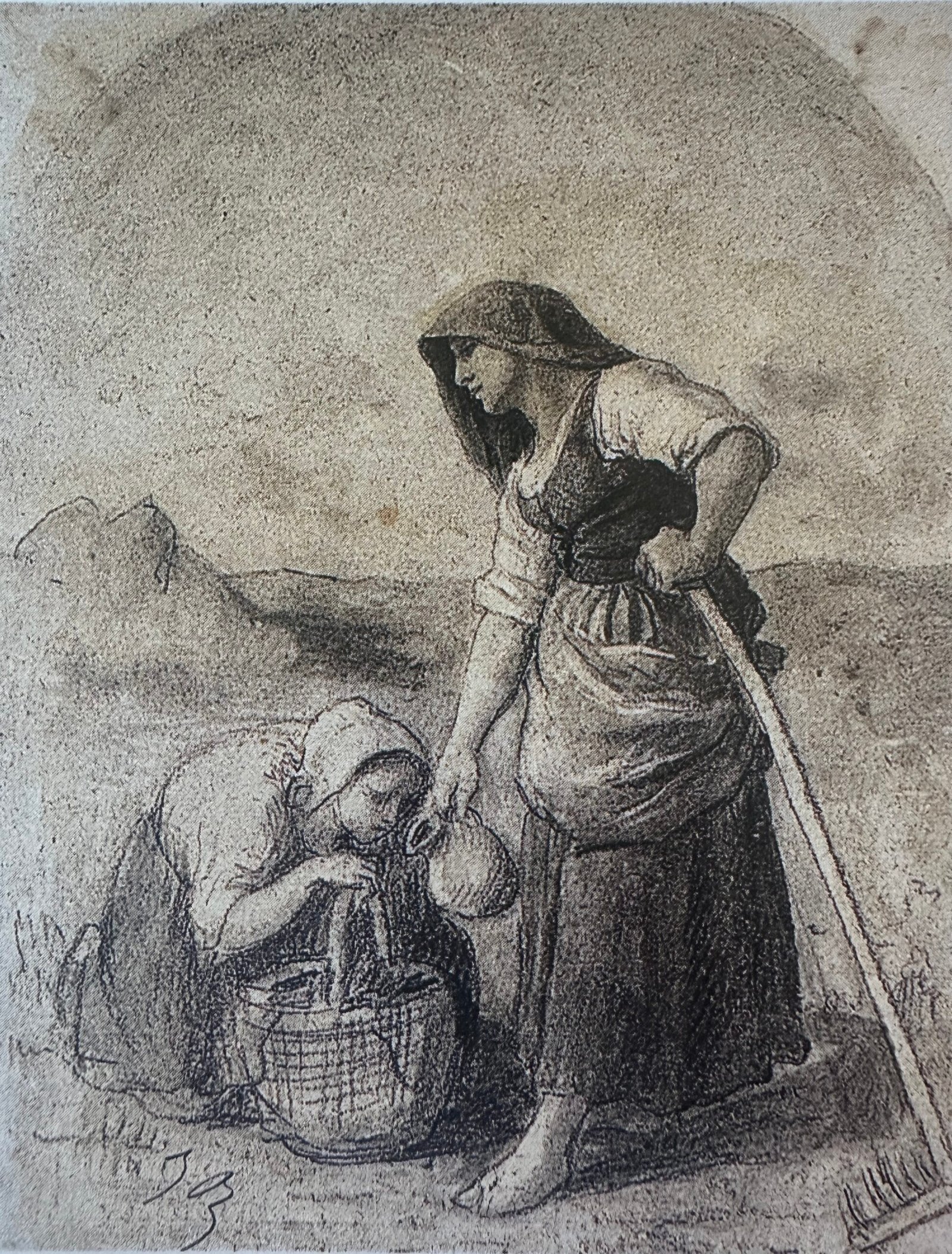 vers 1860 [Signé en bas à gauche : J B] Fusain et craie sur papier 24,5 x 18,5 cm (9 1/2 x 7 1/4 in.) France, collection particulière Sujet Le caractère anonyme de la figure de droite, dissimulée sous son fichu, ainsi que la simplicité de la composition pyramidale offrent certaines affinités avec Millet. La voûte en demi-cercle esquissée au-dessus […]