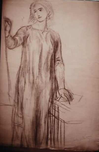 1902 Mine de plomb sur papier 14 x 22,5 cm. (5 1/2 x 9 in.) France, collection particulière Sujet Delphine B. est esquissée dans la pose pratiquement définitive. Le corps nu est légèrement esquissé sous la tunique, ce qui est rare chez le peintre. Source Carnet de croquis n°6 (1865-1902), p.53