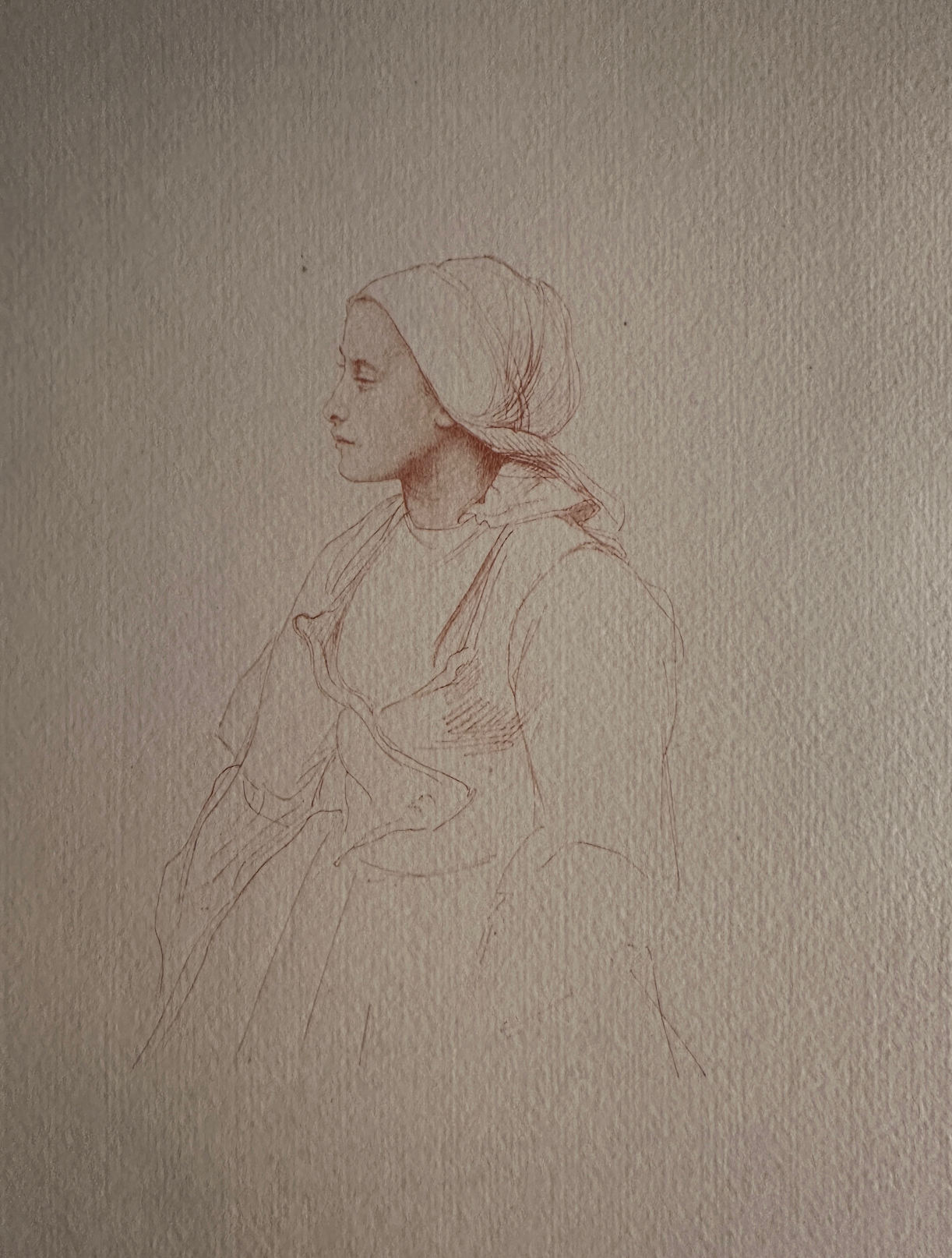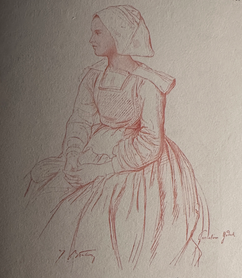 1868 [Signé en bas à gauche : Jules Breton et annoté en bas à gauche : Caroline [?] Godek] Sanguine Dimensions inconnues Localisation actuelle inconnue Bibliographie Monographies et ouvrages collectifs Vachon, 1899, ill. p.3.; Delouche, 1978, t.2, n°798, p.735 ill.