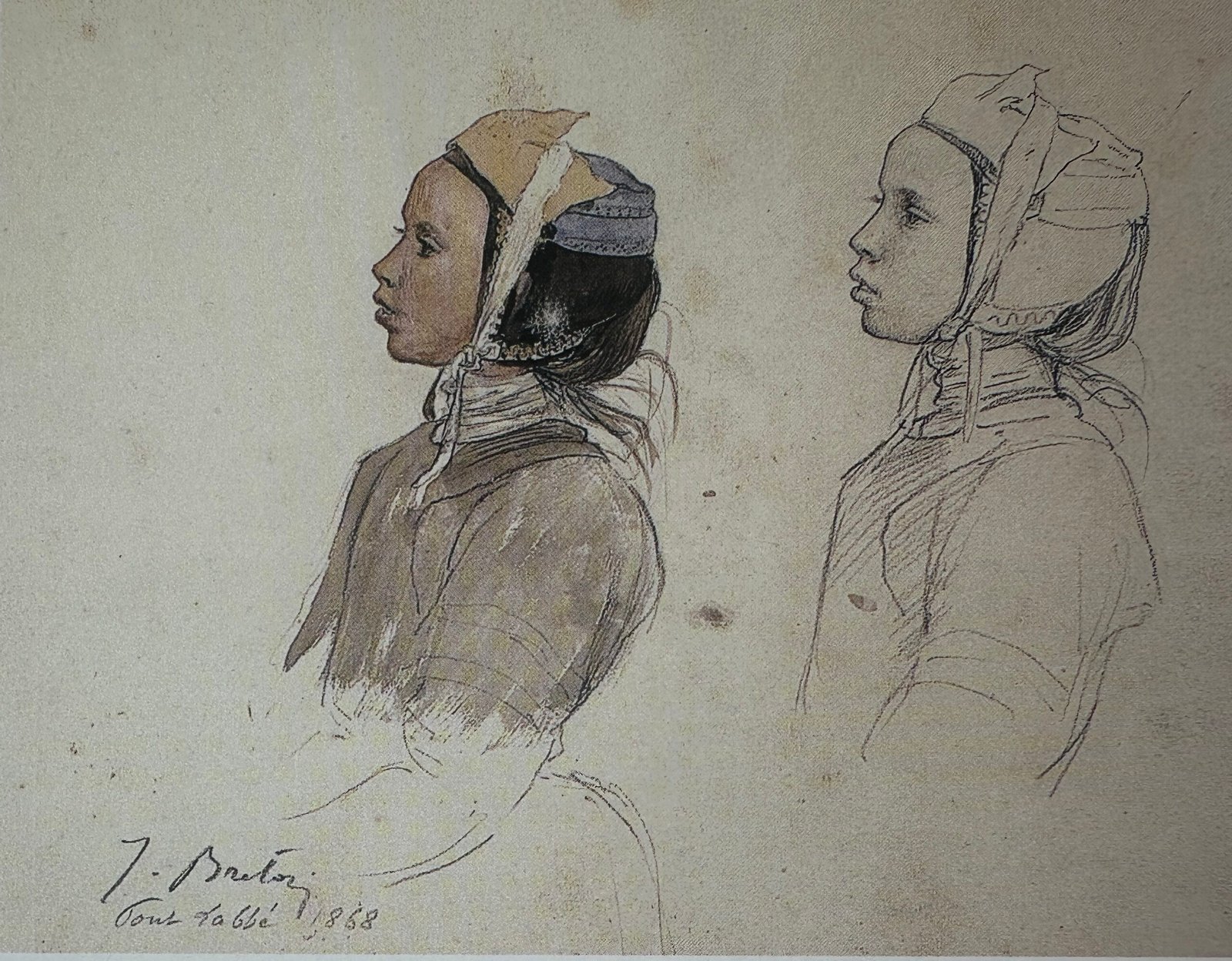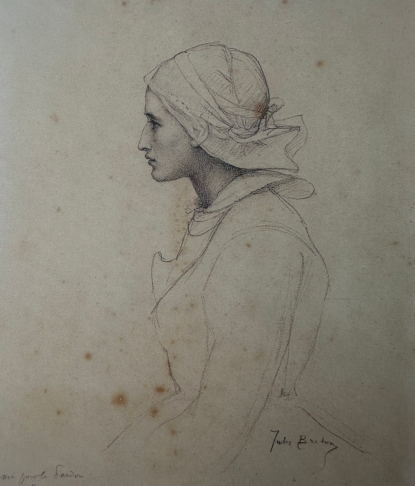 Vers 1868 [Signé et titré en bas à droite : J. Breton/tête de bretonne] Mine de plomb et crayon sur papier 28,7 x 23,3 cm (11 x 9 in.) Quimper, Musée des Beaux-Arts (inv. 11-2-1) Sujet Fait partie d’un ensemble de trois dessins de têtes de bretonnes pour Un grand Pardon breton, dans un encadrement de 0,470 x 0,990 cm. […]