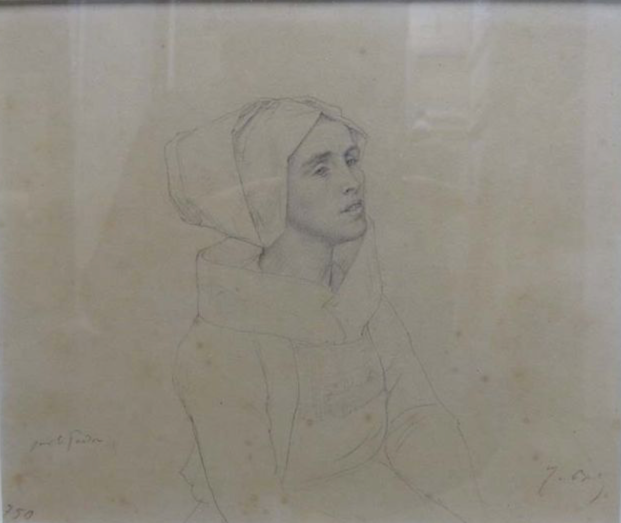 1869 [Monogrammé en bas à droite : J.B. et inscrit au dessus croquis pour le Pardon, et dans l’angle en bas à droite, le chiffre 510 et signé et dédicacé en bas à gauche À Madame Louise Bauchet / hommage affectueux d’une vieille amitié. J. Breton] Crayon sur papier mis aux carreaux 48 x 31 cm (19 x 12 1/4 […]