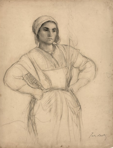 1873 [Signé en bas à droite : Jules Breton] Crayon noir sur papier 45,7 x 29,7 cm (18 x 11 3/4 in.) Canada, Ontario, Collection particulière Sujet Étude pour le tableau du Salon de 1873 Provenance [Vente Marlborough (U.S.A, Massasuchetts),, Skinner, 22 janvier 2021, lot 14A (2000 $)]