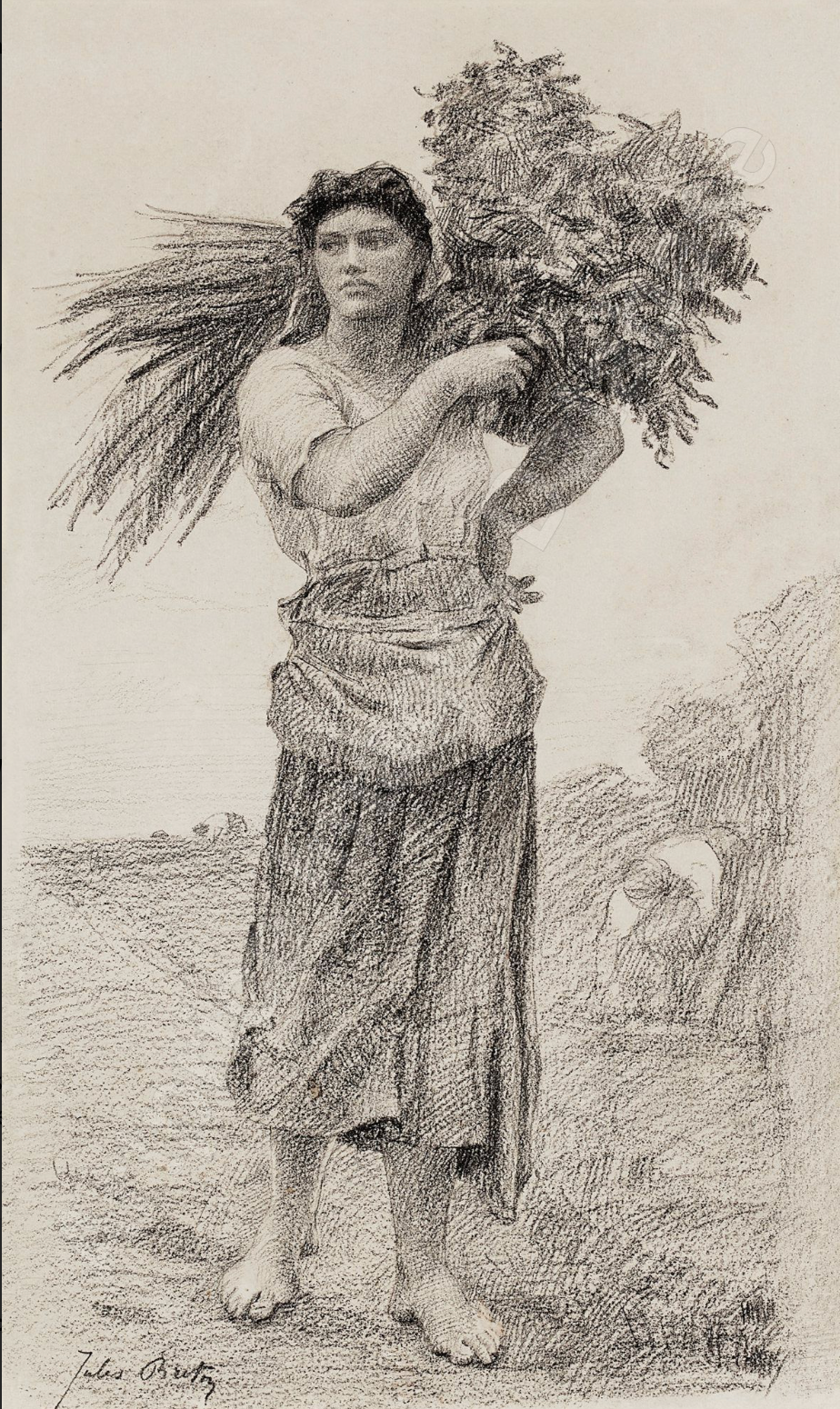 1879 [Signé en bas à droite : Jules Breton] Fusain 37,4 x 56,8 cm (14 3/4 x 22 3/4 in.) Localisation actuelle inconnue Provenance New York, Andy Warhol. [Vente, Paris, hôtel Drouot, Gros et Deletrez, 7 décembre 2001, lot 3] ; Paris, collection particulière. [Vente, New York, Sotheby’s, 18 avril 2008, lot 113]