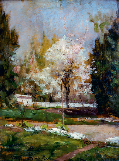 1883 [Signé en bas à gauche : Jules Breton] Huile sur toile 35 × 26,3 cm (13¾ × 10⅓ in.) France, collection particulière Sujet Il s’agit sans doute de l’étude de pommiers en fleurs exécutés le 14 mai 1883, peut-être repris par la suite pour les arbres fruitiers en fleurs devant l’église du tableau. La technique est ici proche […]