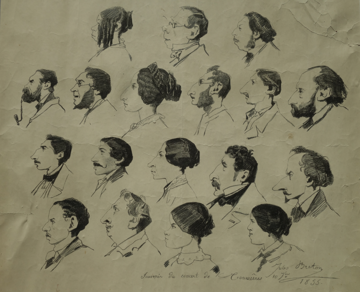 [Titré, signé et daté en bas à droite : Souvenir du concert de Courrières, 10 7bre 1855, Jules Breton]Crayon noir sur papier