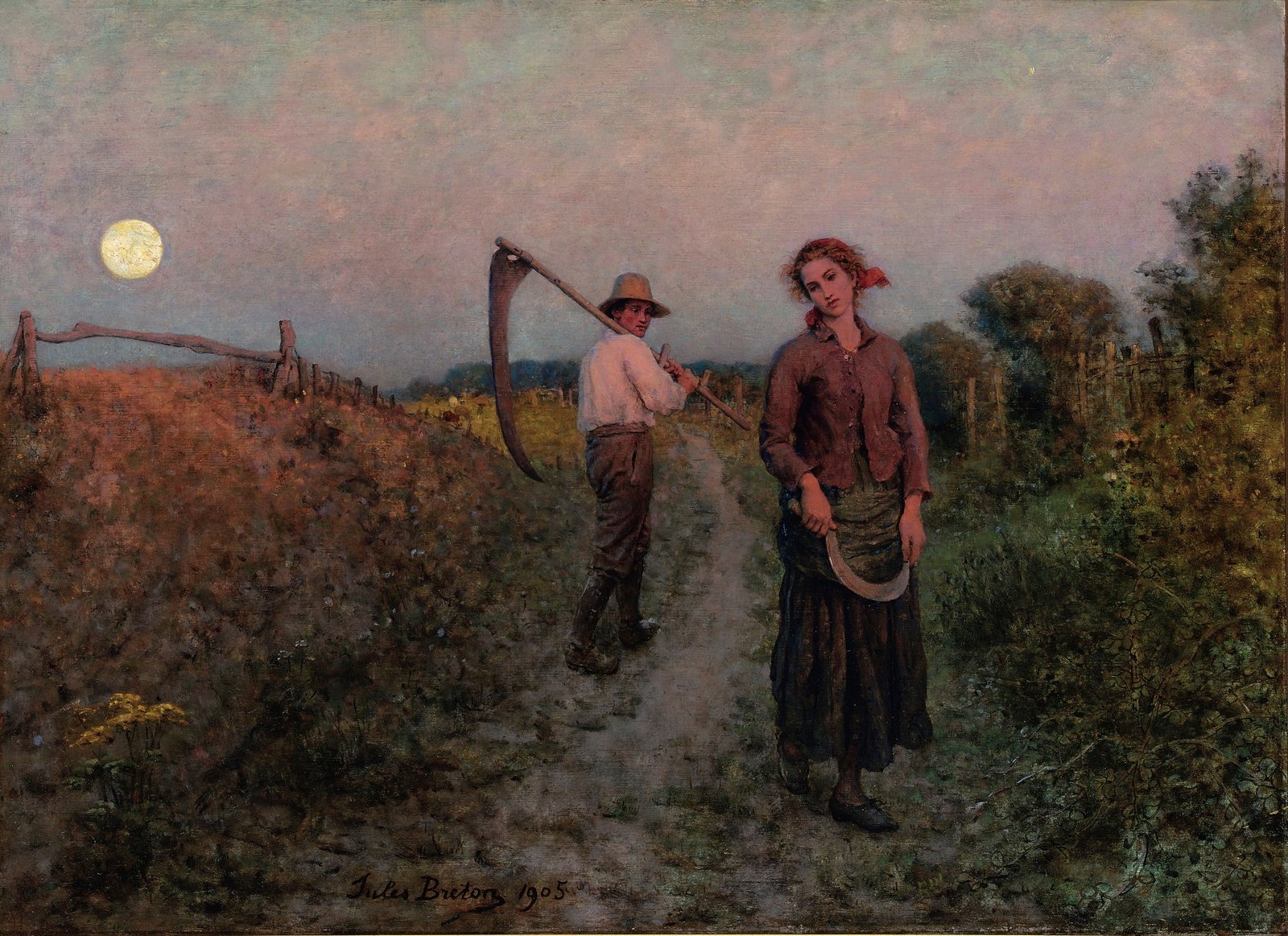 [Signé et daté en bas au milieu vers la gauche : Jules Breton 1905] Huile sur toile 65 × 89 cm (25⅗ × 35 in.) Localisation actuelle inconnue Sujet Un dessin de composition des années 1855-1860, dans le carnet de croquis n° 1, serait à l’origine du tableau, avec le même geste du faucheur et de la jeune femme. […]