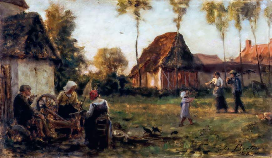 [Signé et daté en bas à droite : Jules Breton / 1883] Huile sur toile 23 × 37 cm (9 × 14½ in.) France, collection particulière Provenance Artiste ; France, collection particulière. Expositions 2002, Arras, Quimper, Dublin, ill. p. 208, n° 96, p. 247. Bibliographie Monographies et ouvrages collectifs Bourrut Lacouture, 2002 (1), ill. p. 208, n° 96, p. 247.