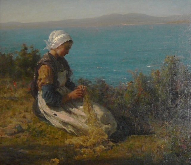 1865-1870 [Signé en bas à droite : Jules Breton] Huile sur toile 47 x 55,9 cm (18 1/2 x 22 in.) Êtats-Unis, collection particulière Provenance [Providence, RI, N.M Vose]. Probablement, Mollie B. Cherry; par descendance, sa fille, Connecticut, Mollie Mary Lee Stiegler.
